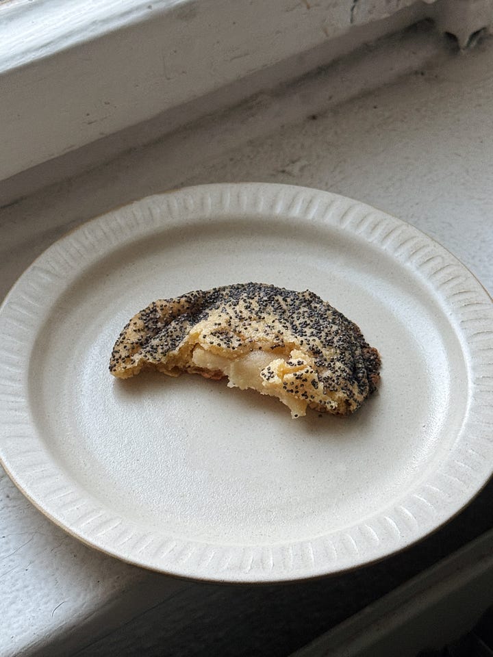 shared her tebirkes inspired scone and lightning stuck. a tebirkes inspired cookie that swaps buttery flaky pastry for buttery sweet cookie dough would be amazing and be a mild, easy to make addition to any cookie box or a fun anytime treat.if you’re unfamiliar with tebirkes, they’re delicious danish pastries made with laminated dough filled with marzipan or some kind of almond filling, then generously coated in poppyseeds. they’re very common in cities with great bakeries like denmarks’ copenhagen of course, but they also make and sell them at sofi here in berlin, filled with a miso remonce that leans a bit more heavily into savory than sweet. it’s popular to slice open the pastry and use it to sandwich a piece of cheese, another way to play up the sweet and savory aspects of this combination, which i can’t say i personally recommend (with a normal tebirkes or these cookies), but if that intrigues you it may be worth a try.